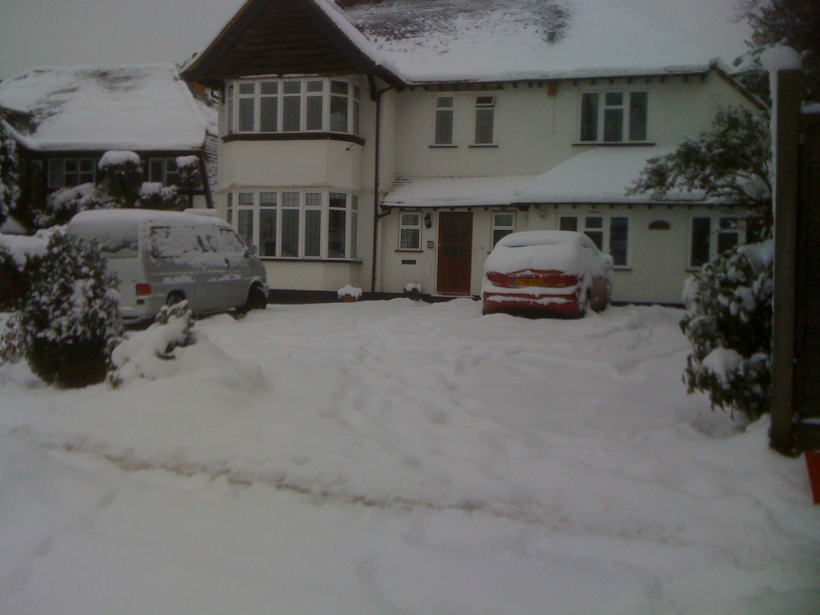 Tim Keys from Eds Garden Maintenance clearing snow and gritting a front driveway